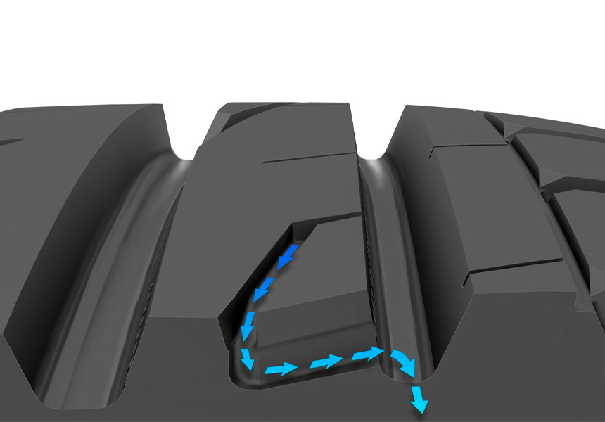 Ламели новой формы, созданные в рамках концепции Dry Touch 2 помогают лучше отводить воду из пятна контакта, перенаправляя влагу от центра наружу. Ламели остаются эффективны на протяжении всего срока службы шин: по мере истирания протектора канавки расширяются и захватывают еще большее количество воды для отведения. Таким образом сцепления во влажных условиях остается на максимально безопасном уровне.
