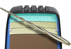 Брекерный слой выполнен из прочной и одновременно легкой стальной проволоки, которая придает всей конструкции жесткость необходимую для точного маневрирования и первоклассной управляемости. Усиленный брекер придает шине устойчивость и выносливость даже в условиях повышенных нагрузок, а также способность лучше противостоять проколам, порезам и другим механическим повреждениям с которыми можно столкнуться на плохих дорогах.